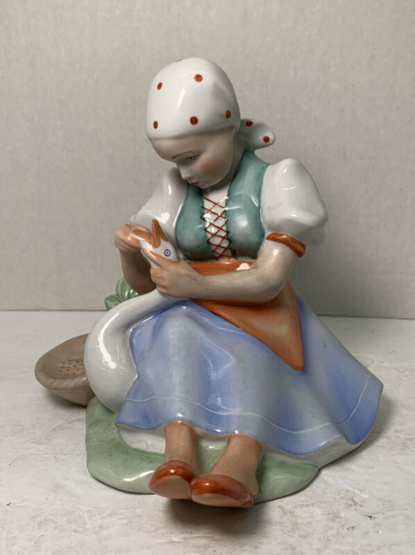 Title (ebay affiliate link): VINTAGE ZSOLNAY PECS HUNGARY PORCELAIN FIGURE OF VILLAGE GIRL w GOOSE