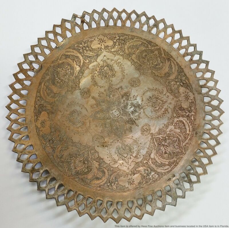 Low Grade Silver Inlay Persian Tray
