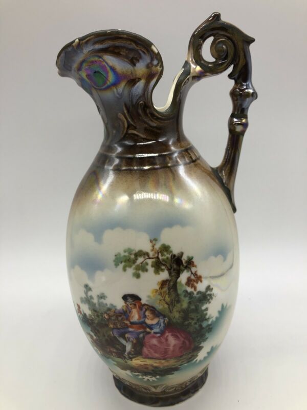VNTG Czech Porcelain Pitcher Ewer Victorian Courting Couple Transferware Luster