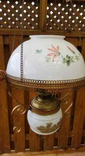 Title (ebay affiliate link): ***Superb Antique Bradley Hubbard B&H Hanging Kerosene Oil Lamp Circa 1895***