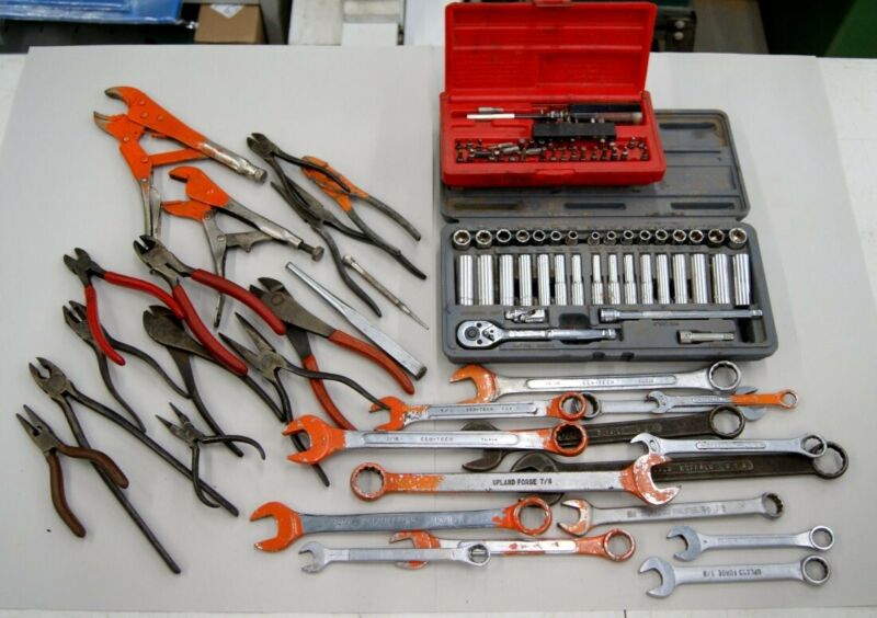 Title (ebay affiliate link): Lot of VINTAGE Mechanic Tools Cutting/Locking/Pliers Wrenches, Socket Set L-3117