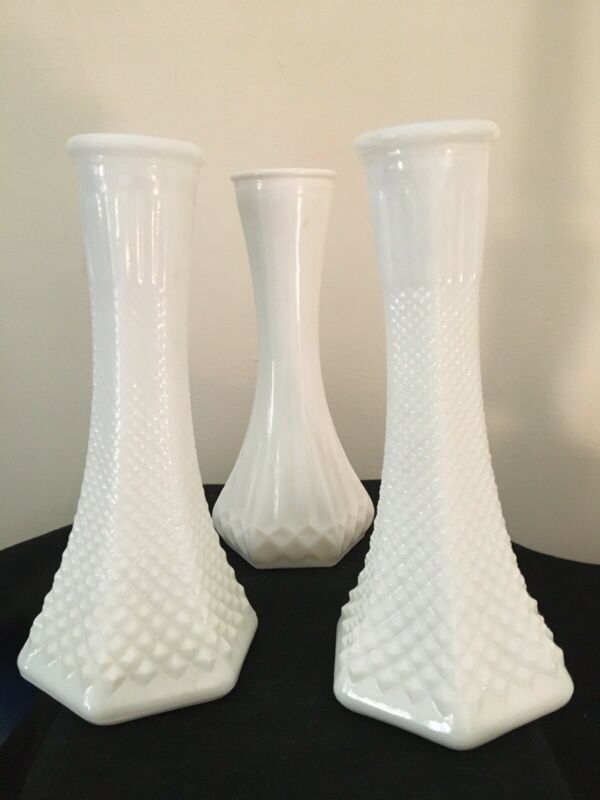 Lot of 3 Vintage Milk Glass 6" Bud Vase
