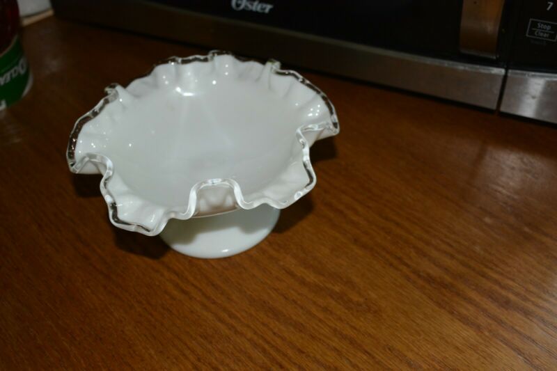 Title (ebay affiliate link): Vintage Fenton Silver Crest Milk White Glass Footed Compote Candy Dish Ruffled