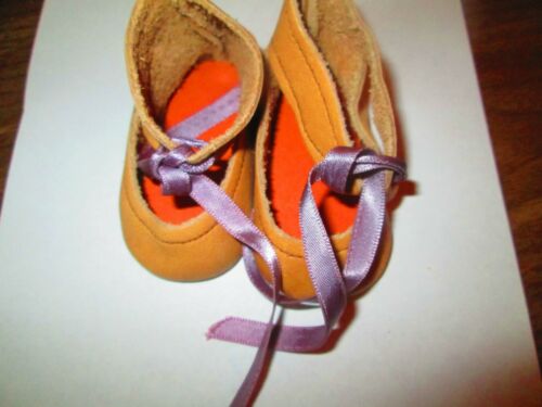 Vintage pair of Doll shoes, approx 3" x 1.25" with tie closure antique beige