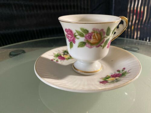 Vintage Rose Pattern Tea Cup & Saucers made in japan