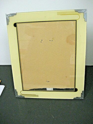 VINTAGE ART DECO REVERSE GLASS 12 x 10 FRAME METAL CORNERS Cream Gold Black