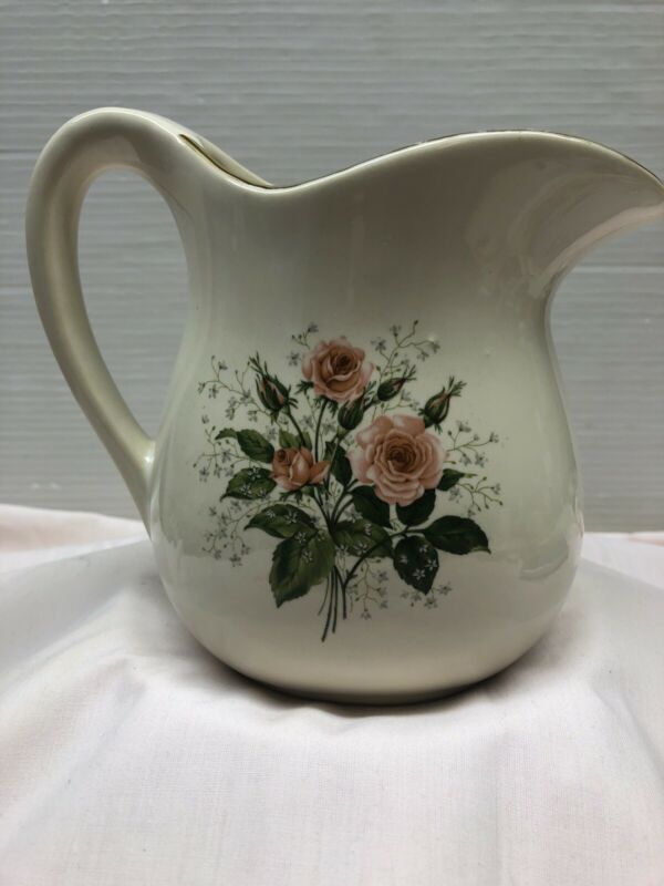 Title (ebay affiliate link): Vintage Porcelain Pitcher Painted Gold Trim & Roses Bouquet 1970 Calendar