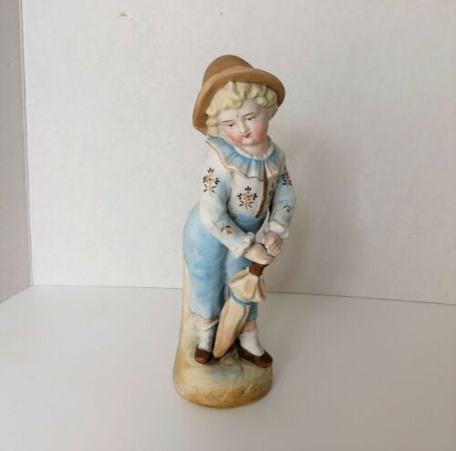 Title (ebay affiliate link): Antique German Bisque Victorian Figurine Boy in Blue w/ Umbrella Piano Baby