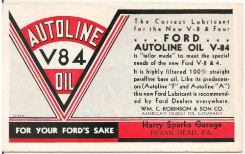 Ford Autoline V-84 Oil, Harry Sparks Garage Indian Head PA Blotter