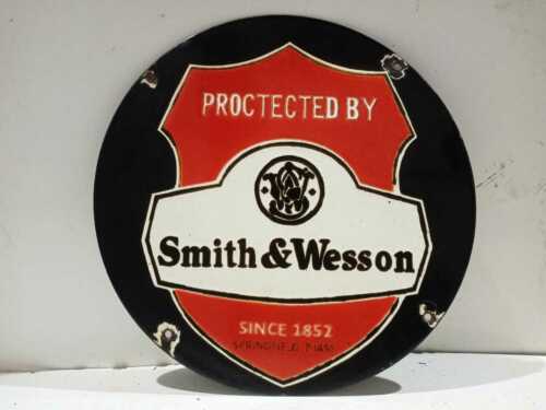 Title (ebay affiliate link): Porcelain Smith & Wesson Enamel Sign Size 12" Inch Round