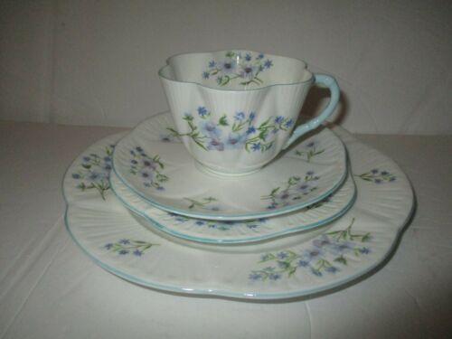SHELLEY Blue Rock 4 pc. Cup & Saucer with 2 Plates