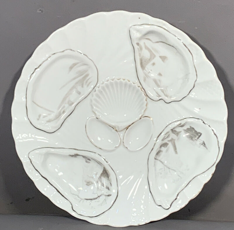 Vintage LANDSCAPE PAINTING on PORCELAIN Old COTTAGE DECOR Nautical OYSTER PLATE