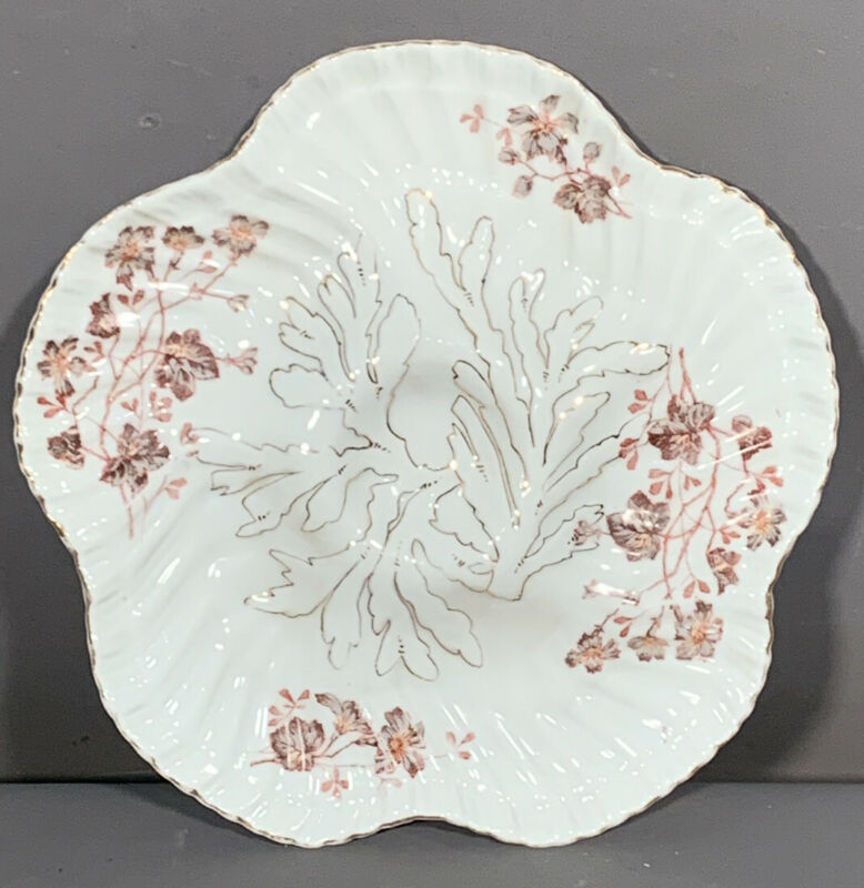 Antique MAJOLICA Pottery FLOWER Litho PORCELAIN Nautical COTTAGE OYSTER PLATE