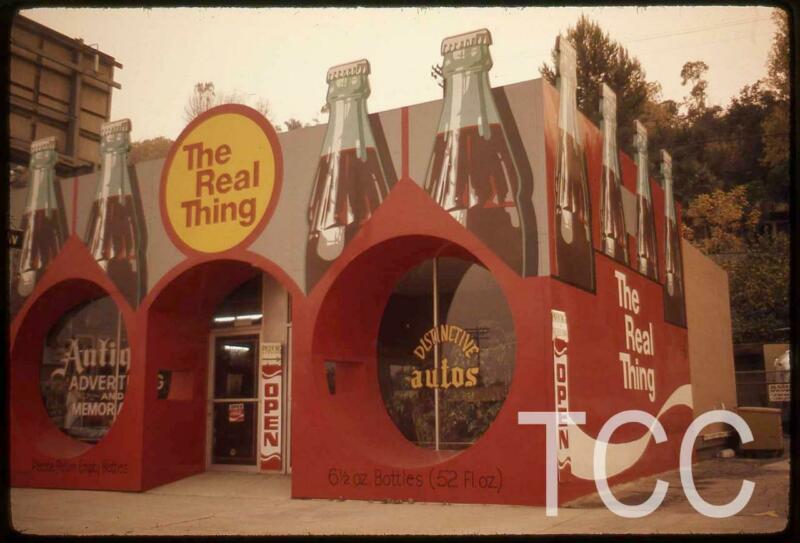 Title (ebay affiliate link): 1970 35mm Slide Los Angeles Street Scene Coca Cola Bottle Building Antiques Auto