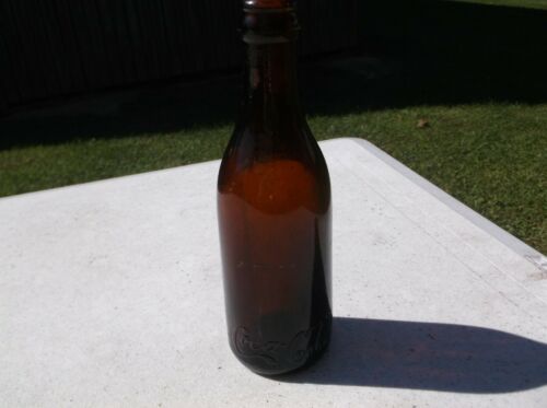 ANTIQUE AMBER BROWN SS COKE BOTTLE LEXINGTON KY 1905-10 8" LOW SCRIPT