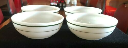 Vintage PYREX Tableware CORNING Set of 4 Green Stripe Milk Glass Cereal Bowls
