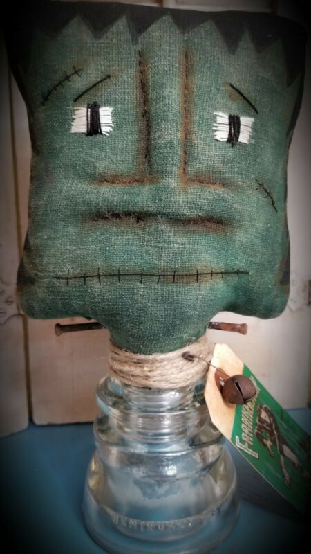 Title (ebay affiliate link): Primitive Frankenstein Make-do on Vintage Glass Insulator ~ Doll ~ Halloween ~