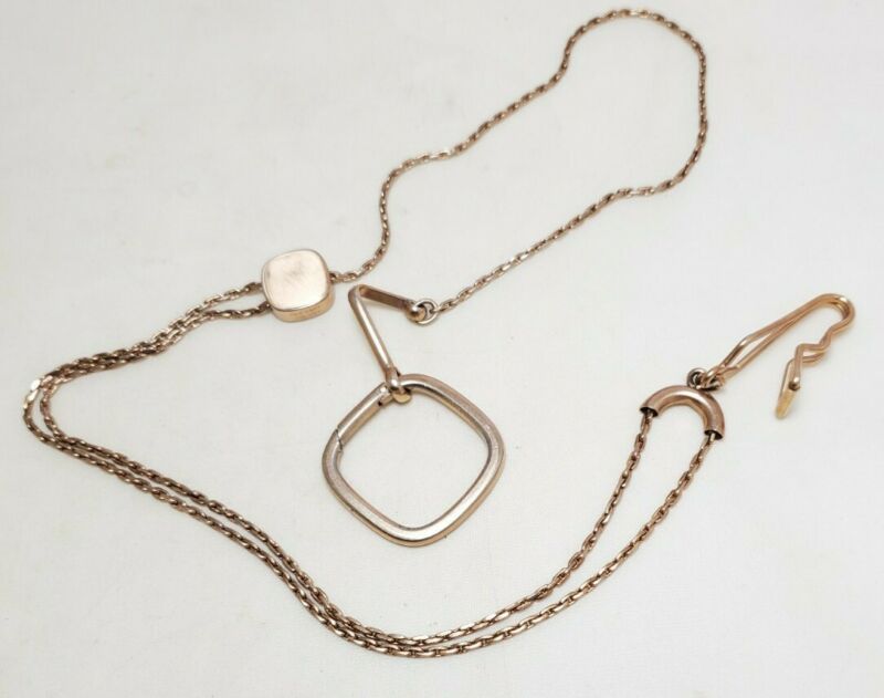 Antique Vintage Signed Swank Gold tone Slide Vest Clip Watch Fob Chain