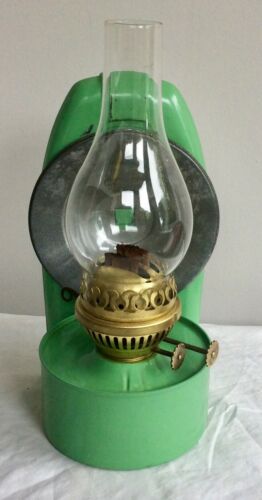 Vintage Green enamel wall or table Oil lamp