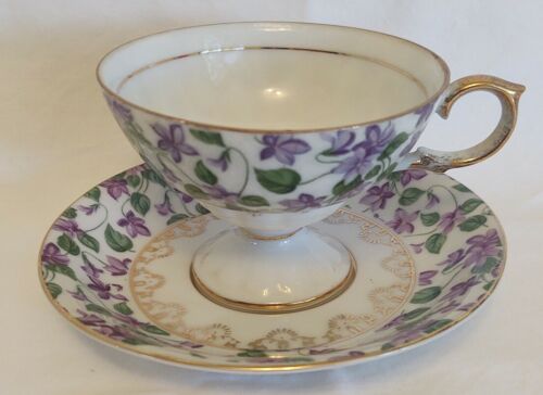 Vintage Pedestal Cup & Saucer - Violets MH1424N