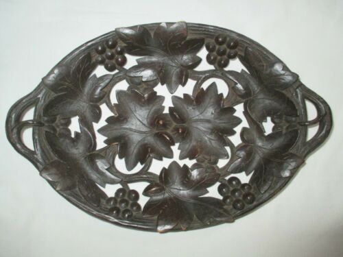 Title (ebay affiliate link): Vintage Carved Fretwork Black Forest Leaves Vine Grape Fruit Tray Basket Handles