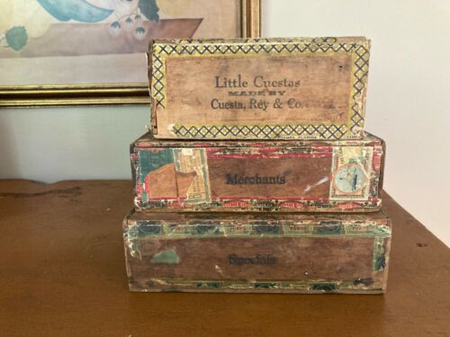 Title (ebay affiliate link): 3 Vintage Primitive Wooden Cigar Boxes - Hoo-Hoo, G.B. Havana Sp, Little Cuestas