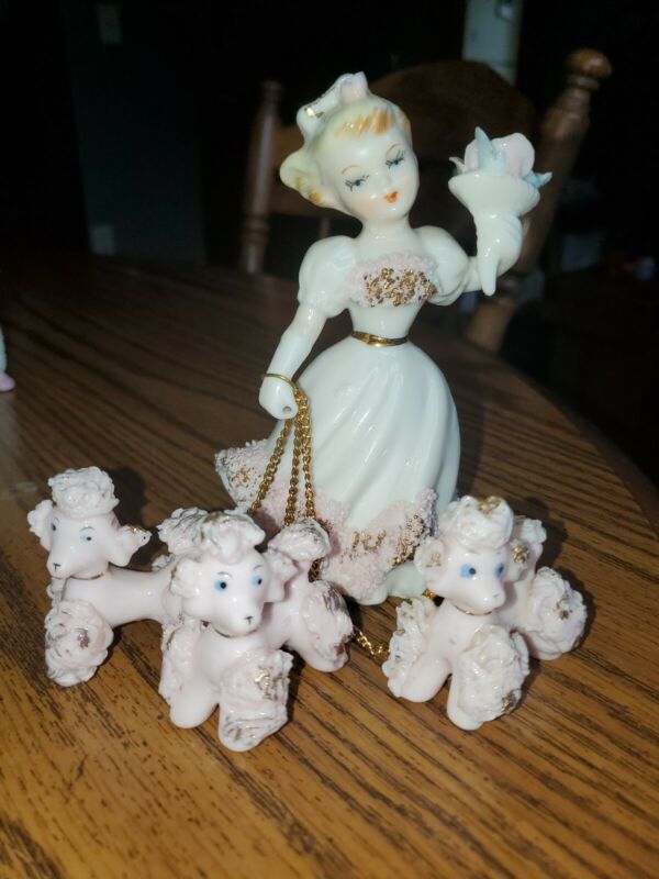 Title (ebay affiliate link): Vintage Lefton Girl Lady With Pink Poodle Dogs on Chains # 692, Original Sticker