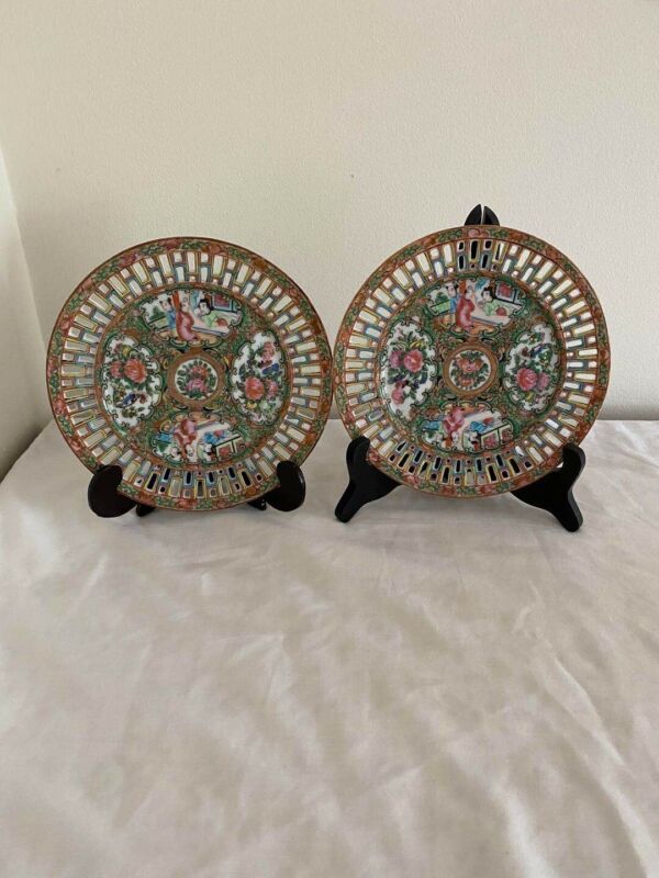 Title (ebay affiliate link): Chinese antique porcelain plates set of 2, 7.5 inch floral pattern, slotted