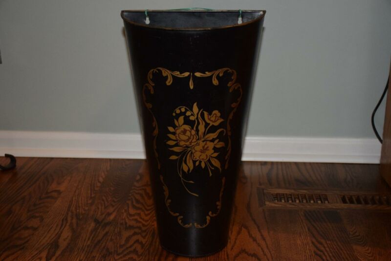 Title (ebay affiliate link): ANTIQUE LARGE TOLEWARE METAL HANGING WALL PAINTED PLANTER VASE SCONE RUSTIC VGC