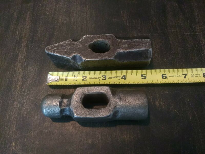 2 Lb. Straight Peen Octogan & 1Lb. 8 Oz.Ball Been Hammer Heads ~ UNMARKED