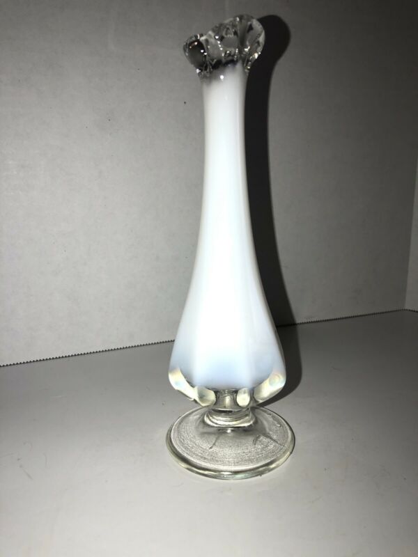 Vintage Fenton Milk Glass, Silver Crest,Crimped, Vase