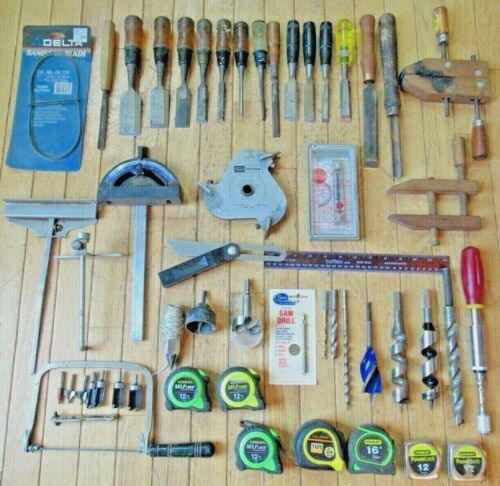 Title (ebay affiliate link): Lot of Woodworking Tools - Chisels, Clamps, Router Bits, Tape Measures & More