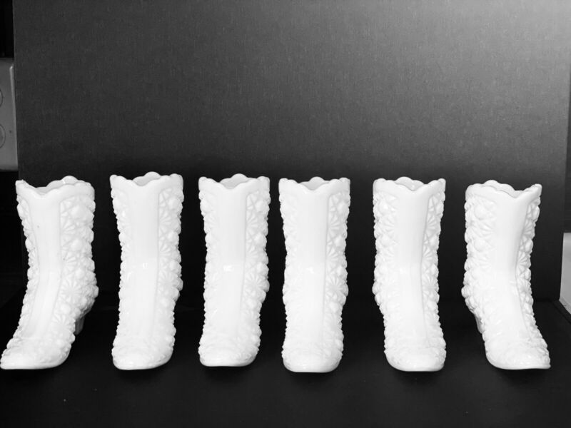 Title (ebay affiliate link): Vintage Lot Of 6 Fenton Daisy And Button Milk Glass Boots.
