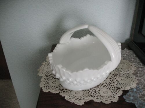 Vintage Milk Glass Bowl, Basket, Hobnail White Milk Dish 5 1/2" x 6 1/2", 5" hi