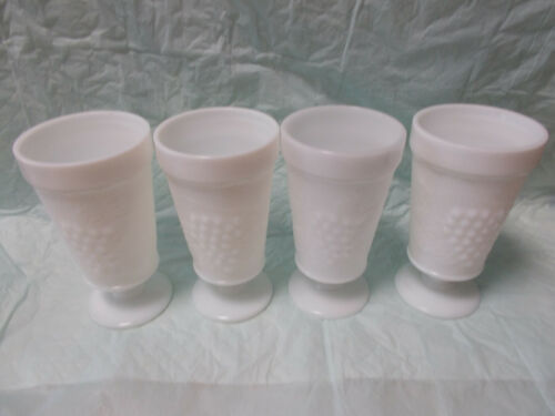 Title (ebay affiliate link): 4 Vintage White Milk Glass Footed Goblets Harvest Grape & Leave Embossed Tumbler