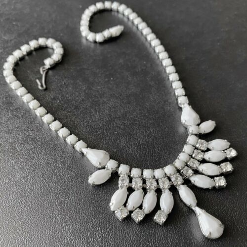 Title (ebay affiliate link): Signed WEISS Vintage White Milk Glass Rhinestone Chic Silver Tone Necklace 206