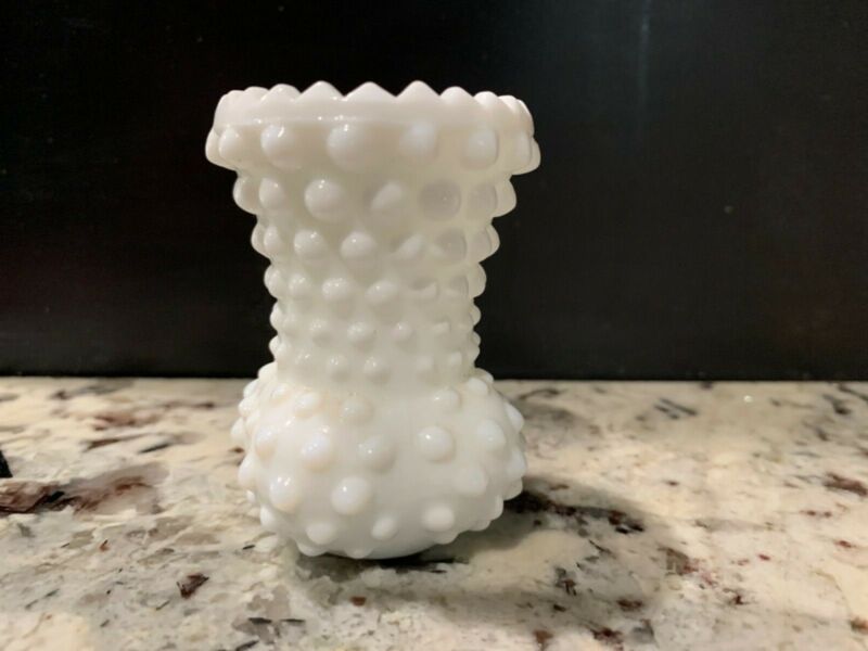 VINTAGE MINIATURE WHITE MILK GLASS HOBNAIL VASE S107