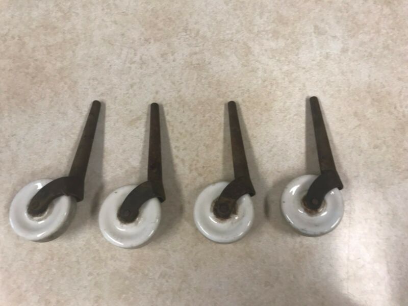Antique Casters With Porcelain Rollers--4
