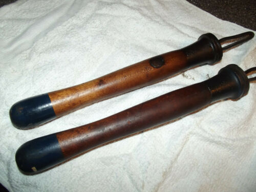 2 ANTIQUE VINTAGE TWO MAN CROSSCUT LOGGING SAW LOOP HANDLES,, E.C. Atkins ???