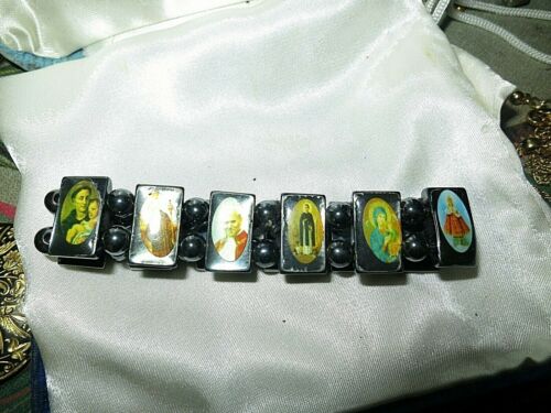 Title (ebay affiliate link): Beautiful vintage hematite religious Jesus picture panel bracelet 8"