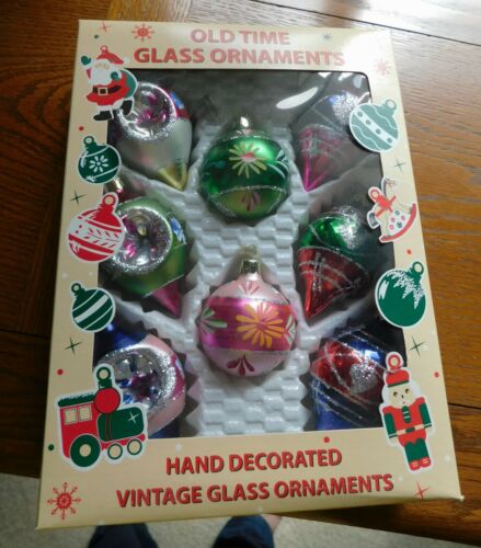 Title (ebay affiliate link): Vintage box Commodore - Glass Christmas Ornaments - teardrop / indents / ball