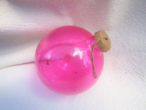 VTG WW2 ERA LARGE 4" UNSILVERED HOT PINK GLASS XMAS ORNAMENT~PAPER CAP