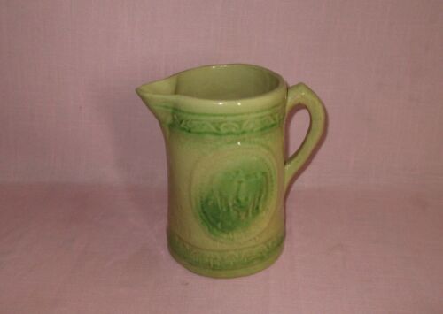 Antique Stoneware Yellow Ware Cows Grazing Green Pitcher A.E. Hull Pottery 1900s