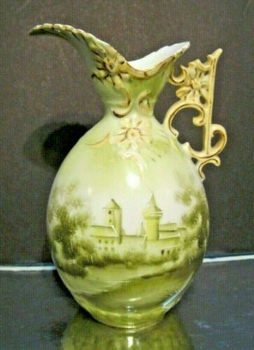 ANTIQUE VINTAGE VICTORIAN HANDPAINTED SCENE PORCELAIN PITCHER CRUET ORNATE
