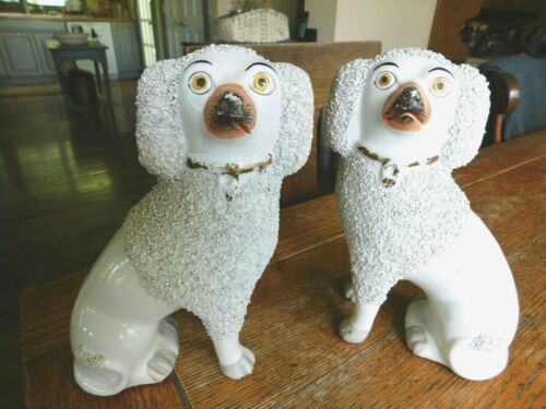 Title (ebay affiliate link): 2 Antique Vintage Staffordshire Ware Poodle Dog Pair Figurines Confetti-England