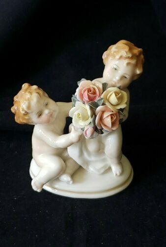 Karl Ens Volkstedt Germany Babies w/ Flowers - Green Windmill Mark
