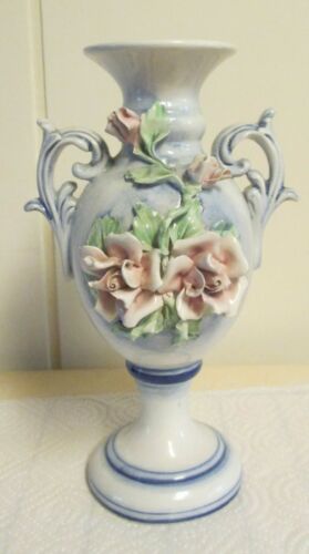 Title (ebay affiliate link): Vintage Capodimonte Style Flower Double Handle Vase Italy