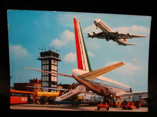 MALPENSA AIRPORT Milan Italy Alitalia DC-8 Airplane Vintage Postcard FREE S/H