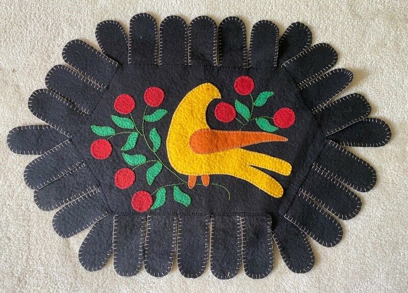 Title (ebay affiliate link): PENNSYLVANIA STYLE OVAL APPLIQUE TABLE MAT w BIRD DESIGN - Mid-1900s