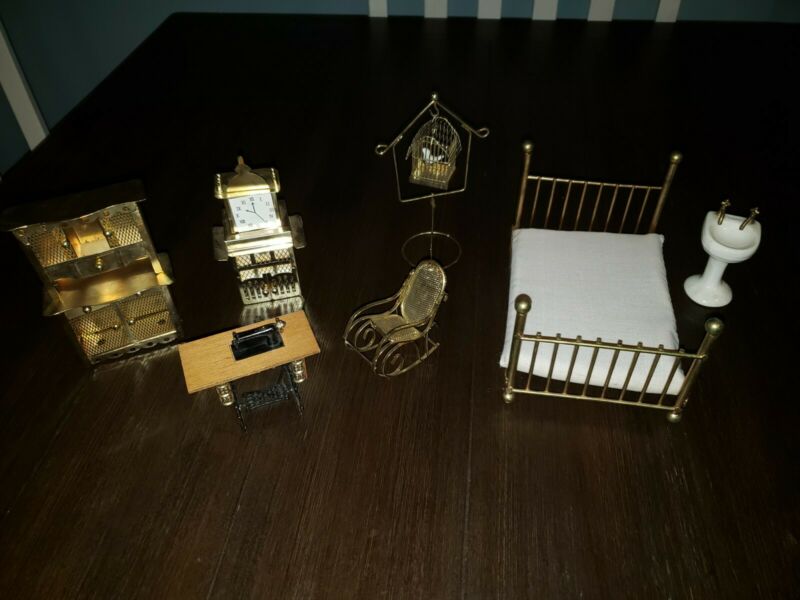 Title (ebay affiliate link): Lot Vintage Dollhouse Miniature Furniture 1:12 Bedroom Brass Bed dresser vanity